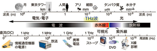 【Terahertz は、光と電波の中間に位置する電磁波の一つです。】
