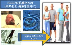 このKEEP・TERAHERTZ抗酸化溶液を金属・プラスチック・ゴム・ガラス・石鹸・セラミックス・塗料・化学繊維等に加工して用いると、それらの物質から周辺の活性酸素に反応して電子を放出させる働き(触媒機能)を持たせられることがわかりました。人や動物は体内に残ってしまった活性酸素により、正常細胞が酸化し、ガン化したり生活習慣病になったりするといわれています。 住宅をはじめ、KEEP・Terahertz抗酸化還元溶液を活用した製品は、これらの活性酸素を消去するという働きにより、簡単に人や動植物を健康にし、 なおかつ地球環境の浄化にも寄与するのです。