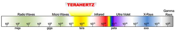 ギリシャ語でテラとは一兆を意味するので、Terahertzとか1秒間に一兆回振動する周波数のことを言います。